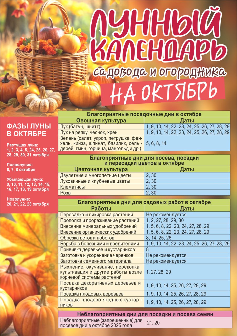 Друзья, сделали лунный календарь для садоводов и огородников на октябрь.