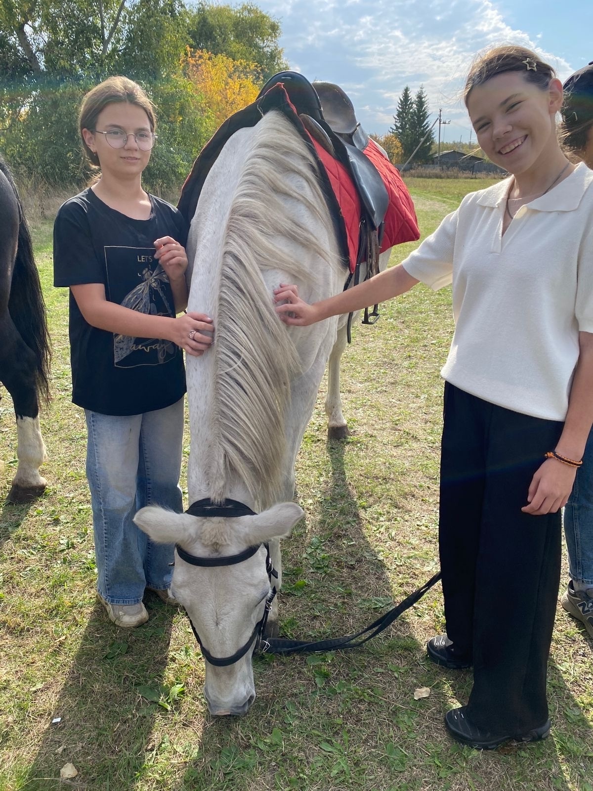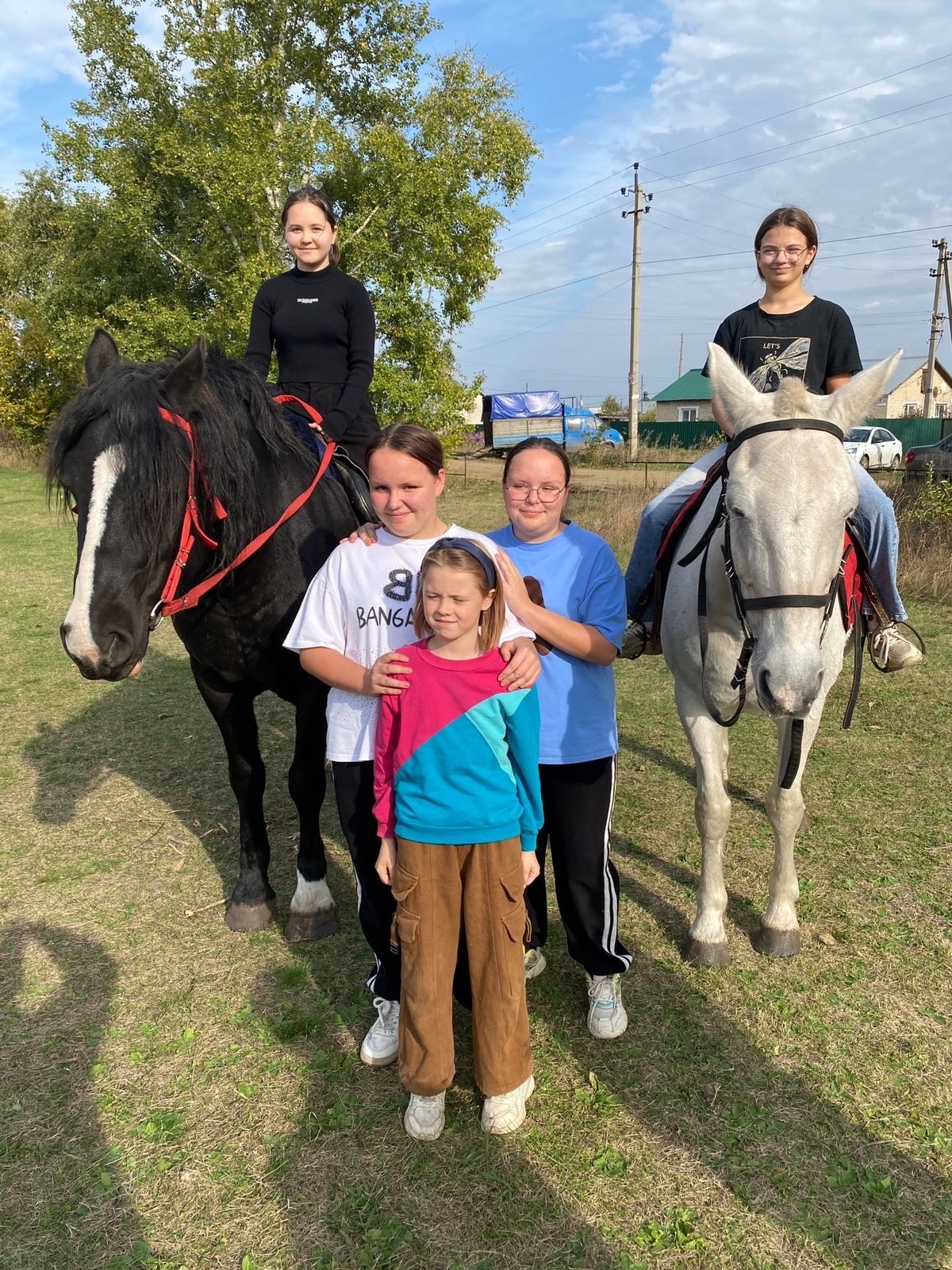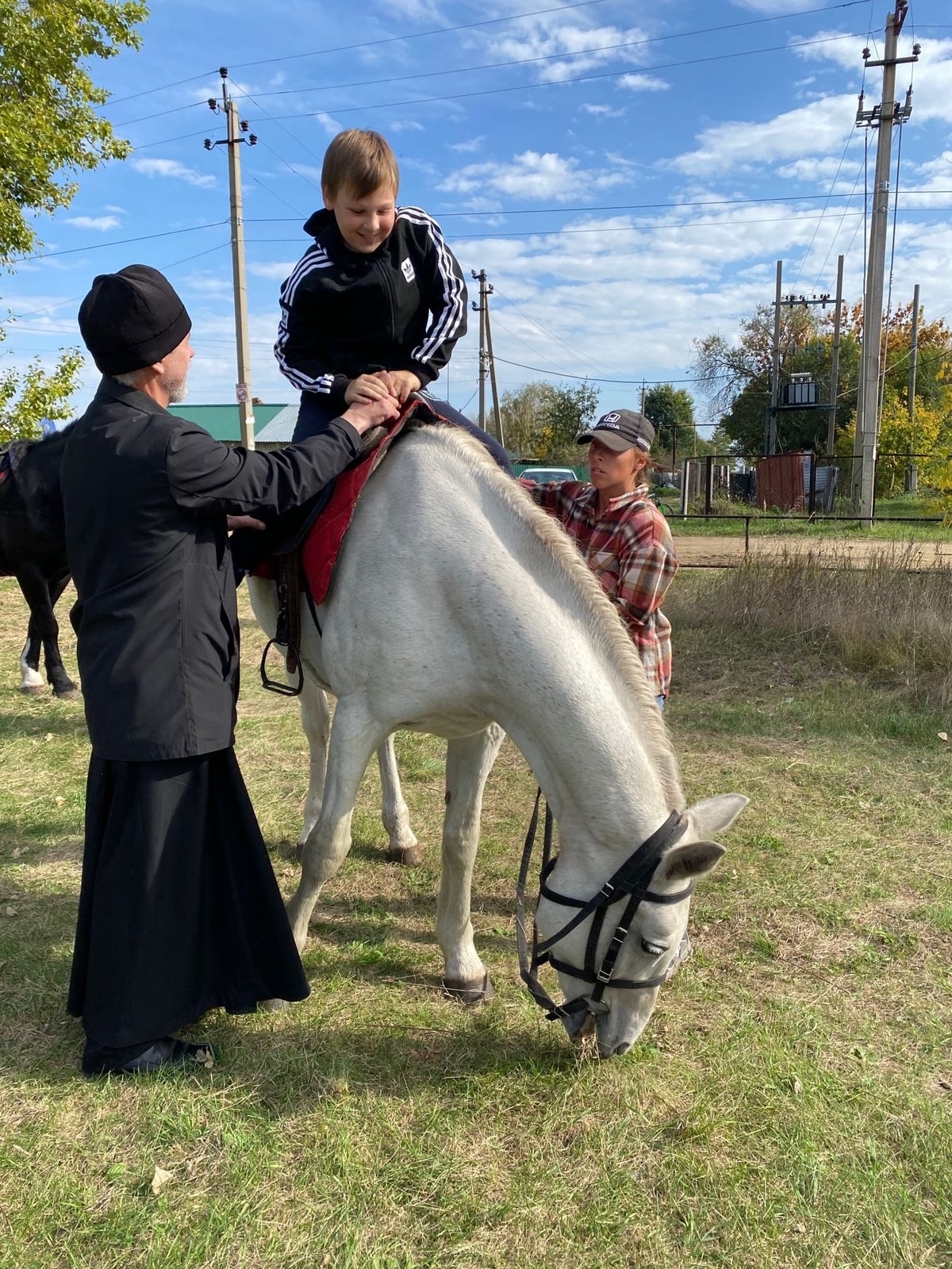 Ученики воскресной школы Свято-Введенского храма села Хомутинино и другие дети из этого села посетили конный двор в посёлке Карабаново.