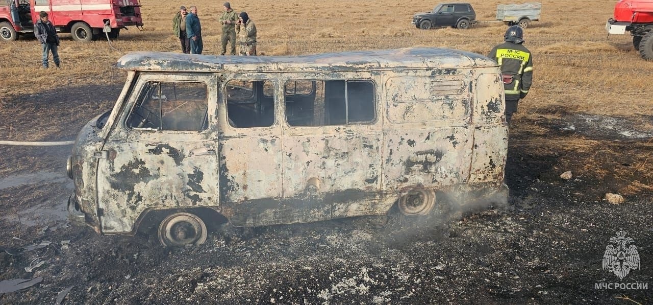 10 октября днем на пульт диспетчера Троицкого гарнизона поступило сообщение о возгорании: на полевой дороге между селом Сосновка и деревней Водопойка горел УАЗ, обычно называемый «буханкой».