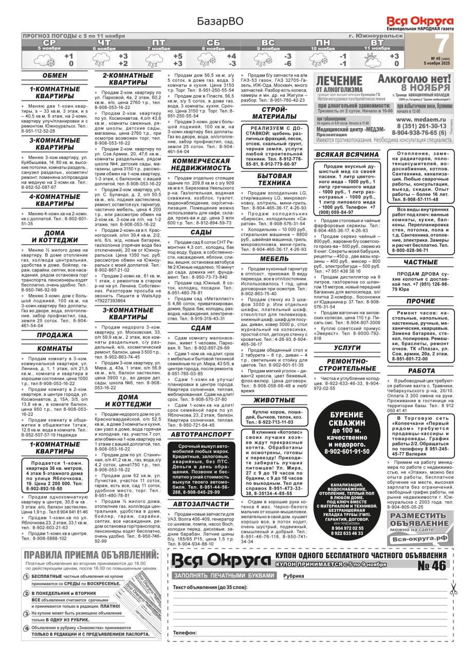 Публикуем объявления из газеты «Вся округа» от 5 ноября.
