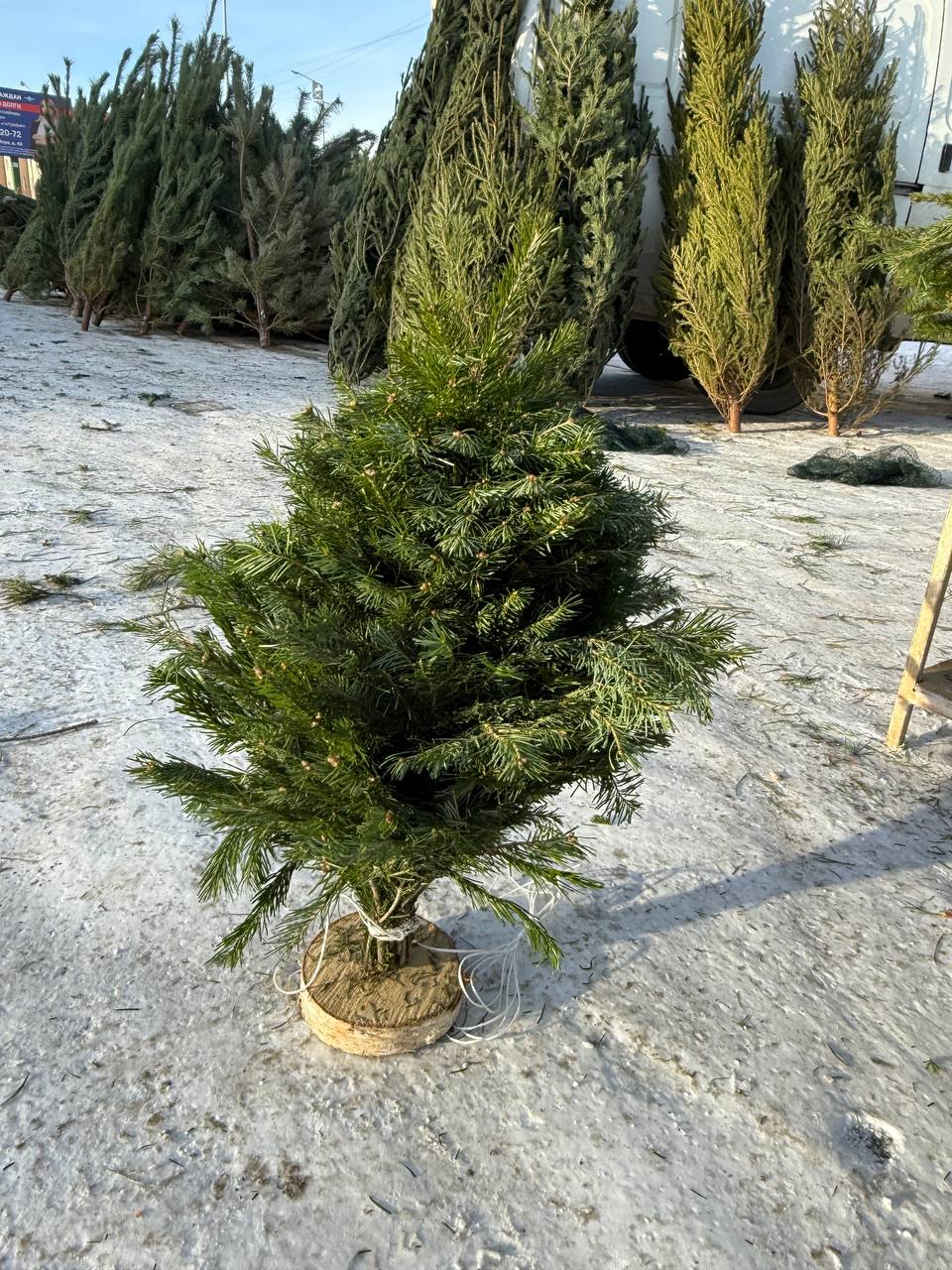 Итак, на площадке по ул. Мира есть выбор – здесь можно купить и сосну, и ель, и пихту. Можно выбрать маленькое деревце на спиле.