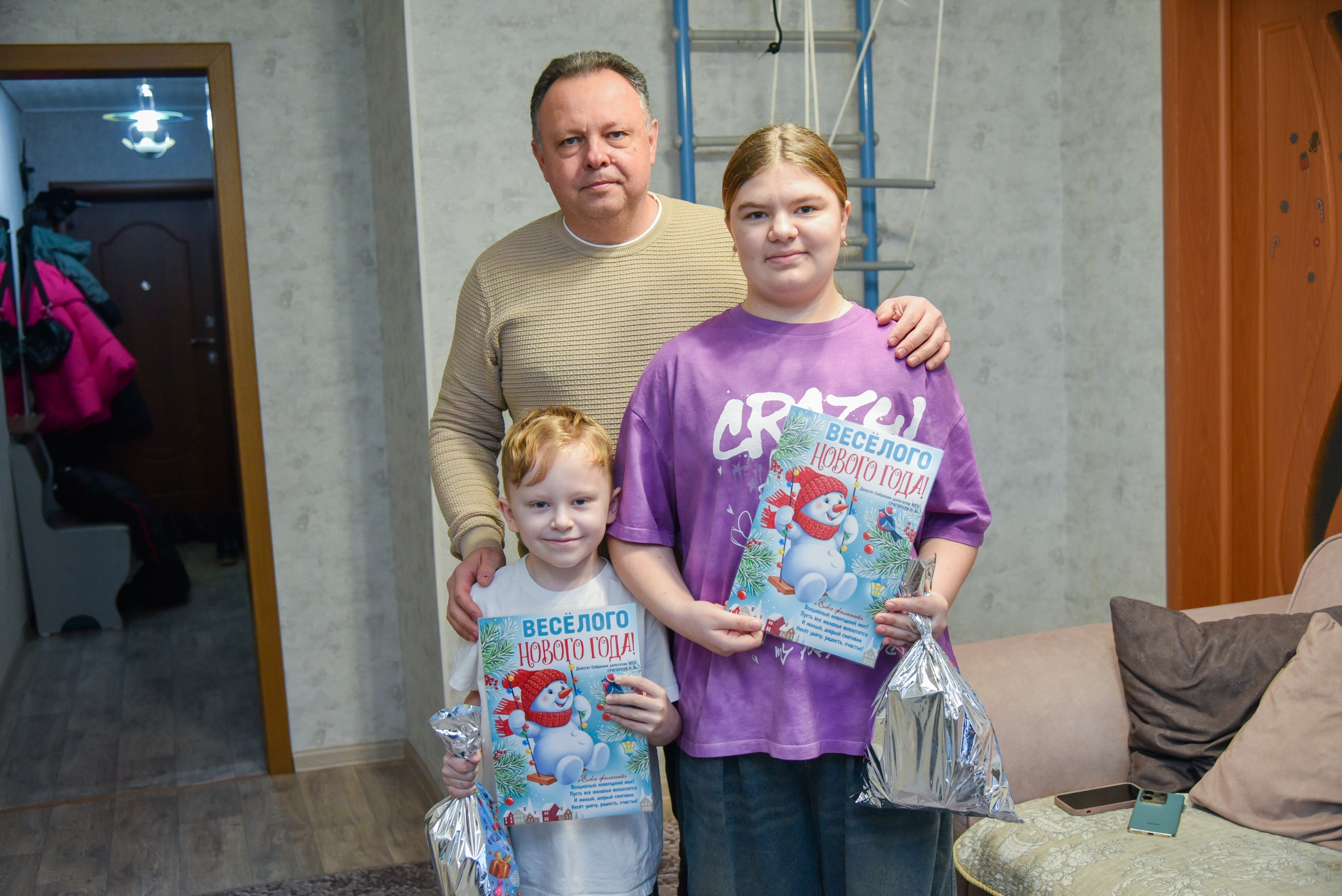 Так, например, замглавы Южноуральска по строительству и городскому хозяйству Сергей Клипа поздравил трехлетнюю Веронику и подарил ей подарок.