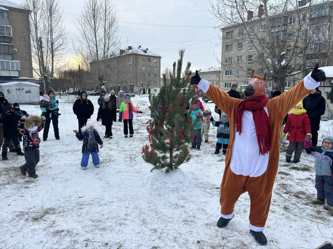 Дворовые ёлки в Южноуральске собирают детей и взрослых. Праздники проходят уже неделю.