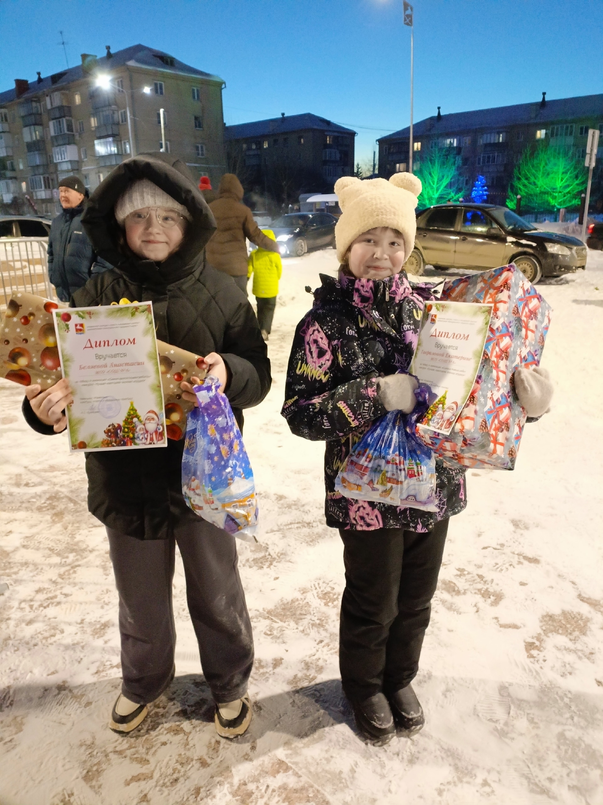 На импровизированной сцене состоялось награждение победителей конкурса на лучшую ёлочную игрушку. Победители получили заслуженные награды и аплодисменты.