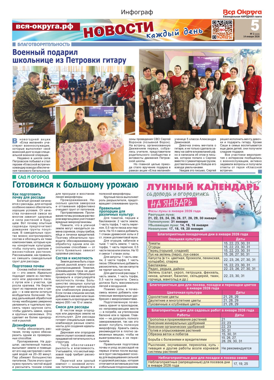 Друзья, в новом номере газеты «Вся округа» – лунный календарь и календарь на 2-ое полугодие 2026 года.