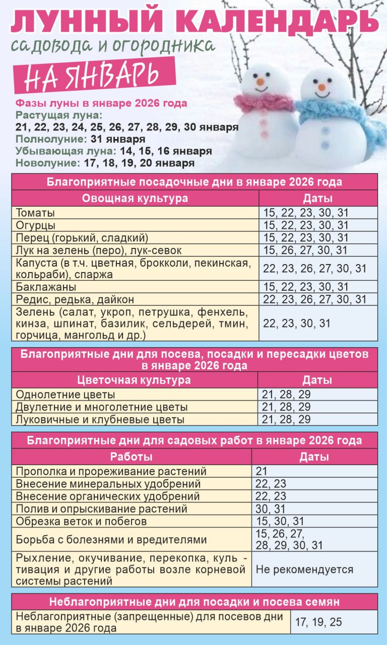 Друзья, сейчас на улице морозно, но до весны уже не так уж и долго. У кого-то есть огород на подоконнике). Для садоводов в прошлом номере разместили лунный календарь.