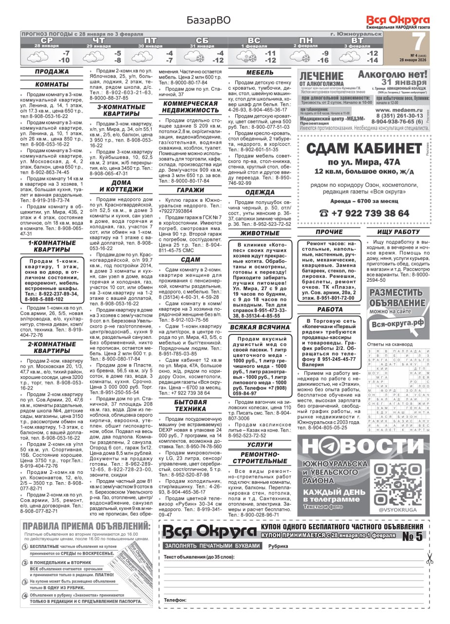 Друзья, публикуем объявления из газеты «Вся округа» от 28 января.