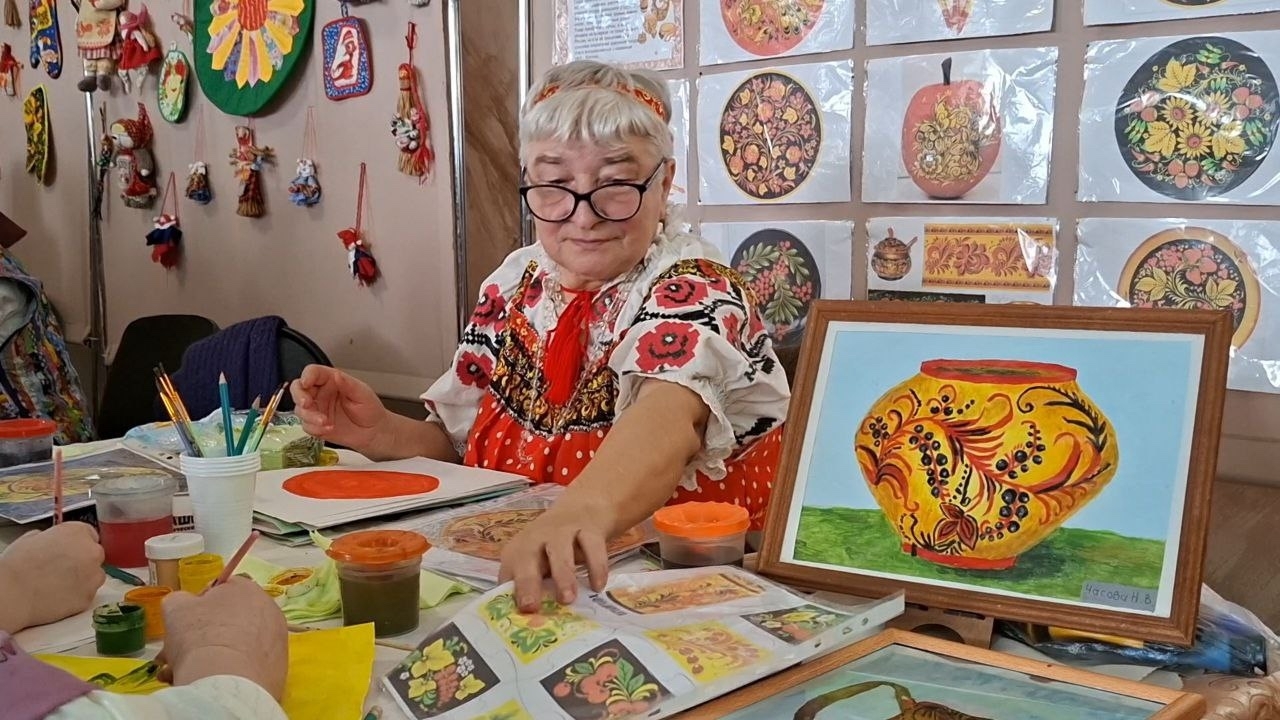 В фойе ДК были организованы интерактивные площадки и выставки. Гости смогли посетить мастер-классы по плетению маскировочных сетей, изготовлению «сухого душа» для участников СВО, созданию кукол-оберегов, валянию из шерсти. Особый интерес вызвал вернисаж Бахытжана Кашакбаева, показавшего написанные им портреты людей в национальных костюмах.
