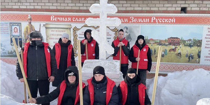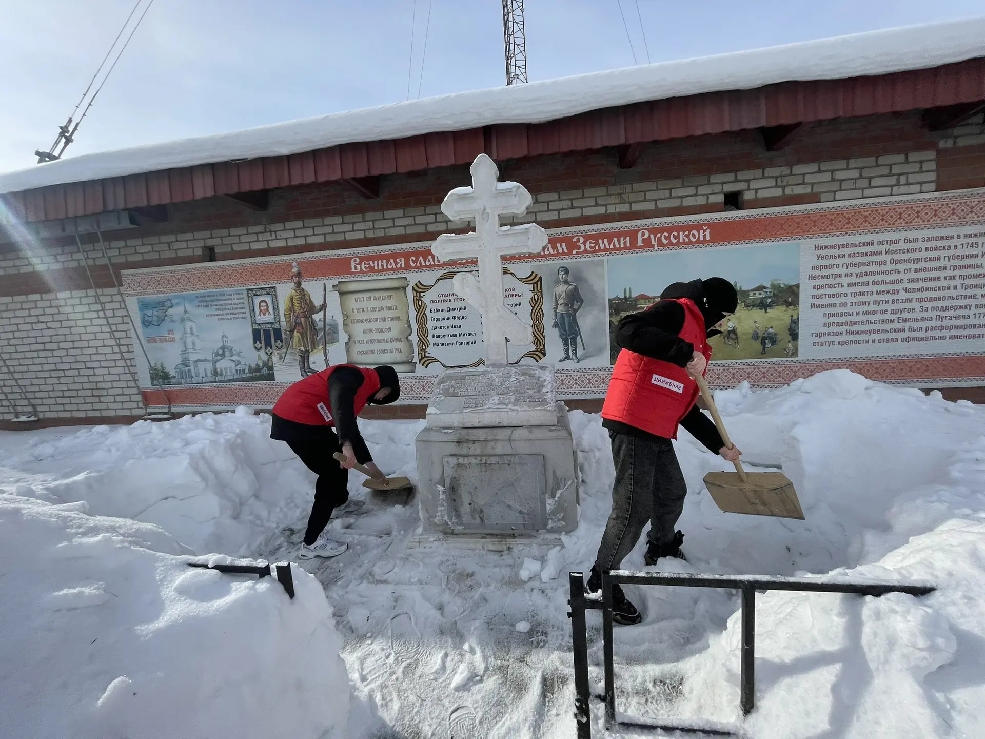 В этом году накануне Дня защитника Отечества ребята из клуба «Станица» очистили от снега подход к поклонному кресту. Как рассказали активисты: