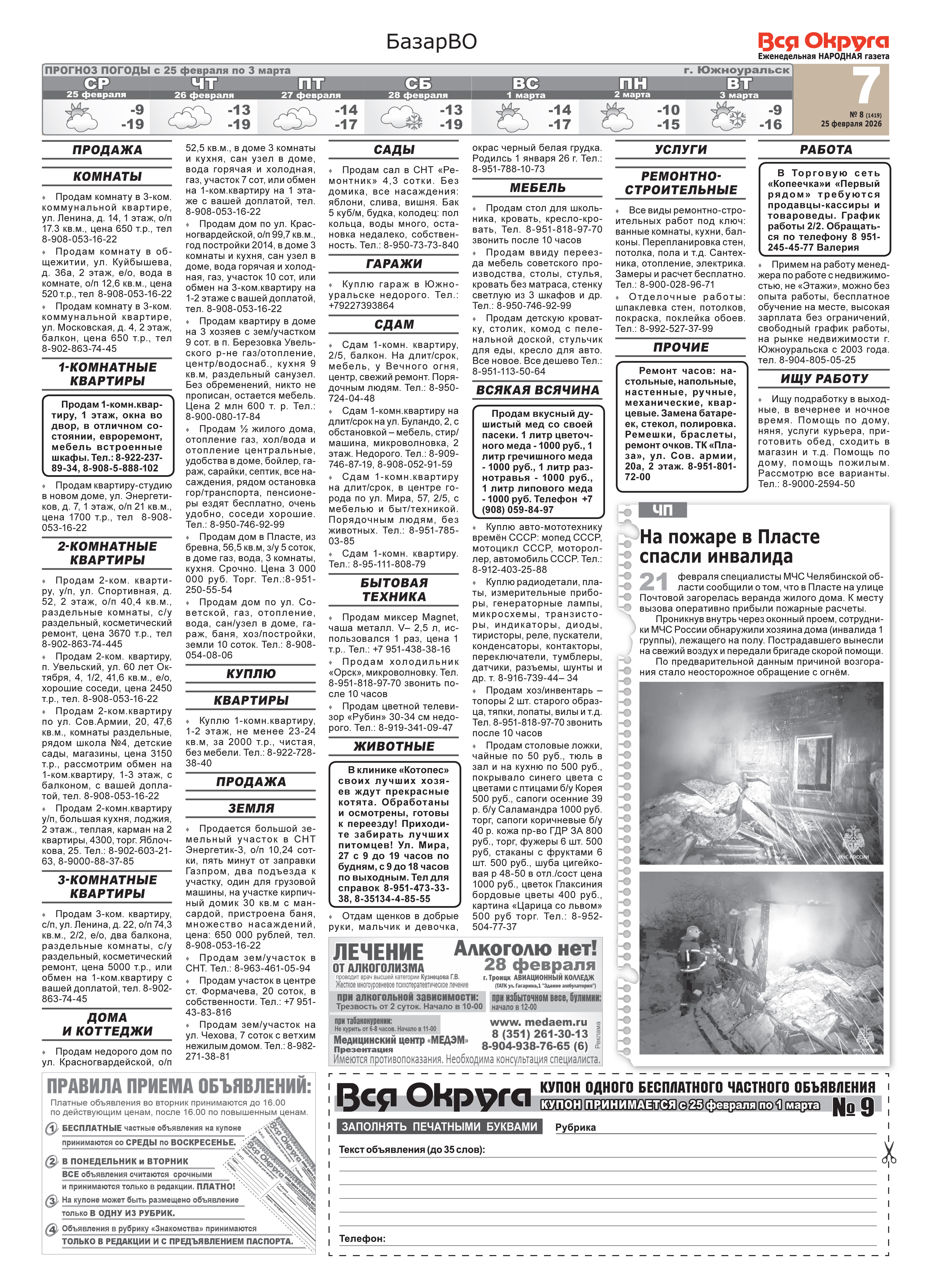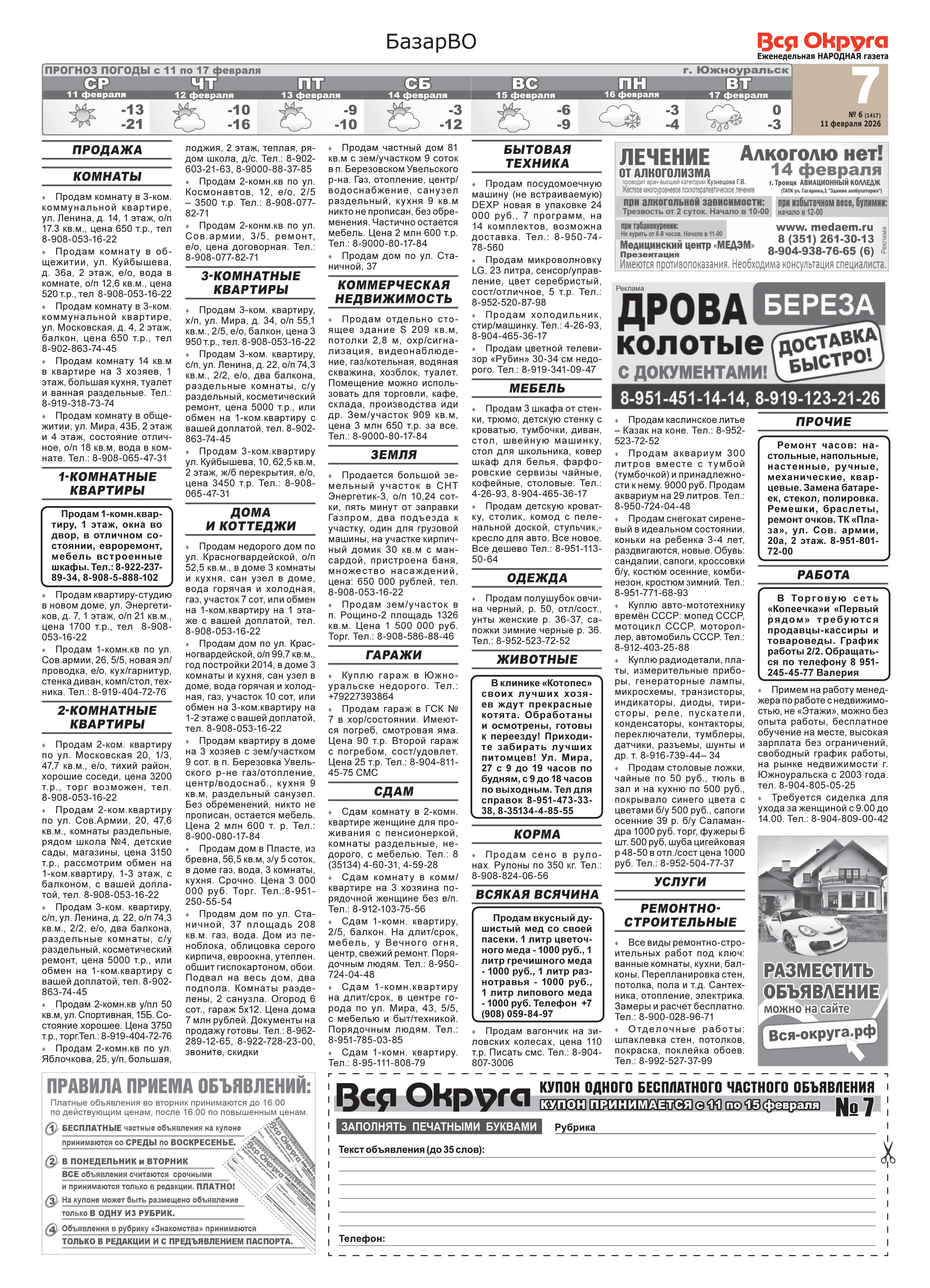 Друзья, публикуем объявления из газеты «Вся округа» от 18 и 25 февраля.