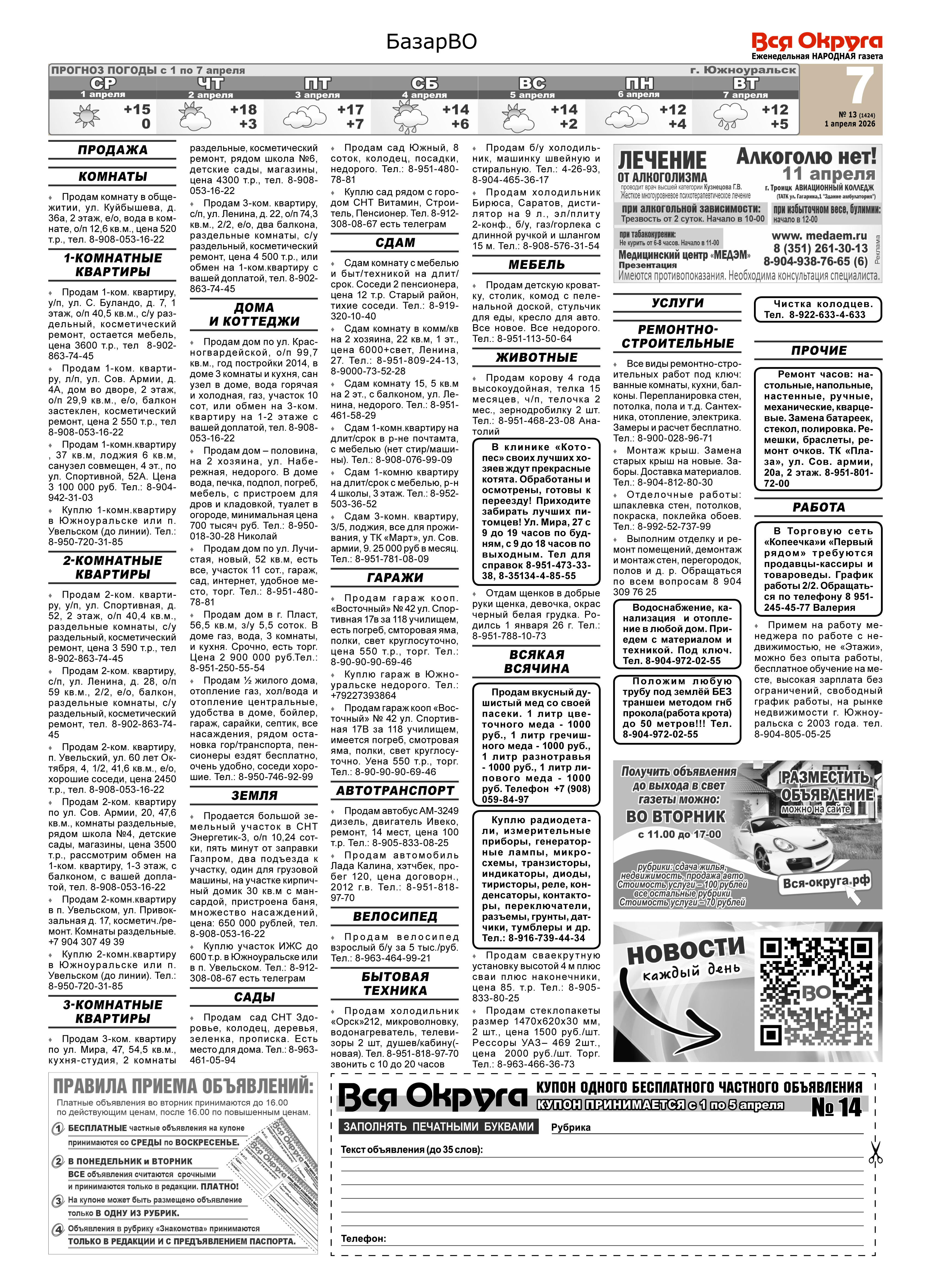 Друзья, публикуем объявления из газеты «Вся округа» от 1 апреля 2026 года.